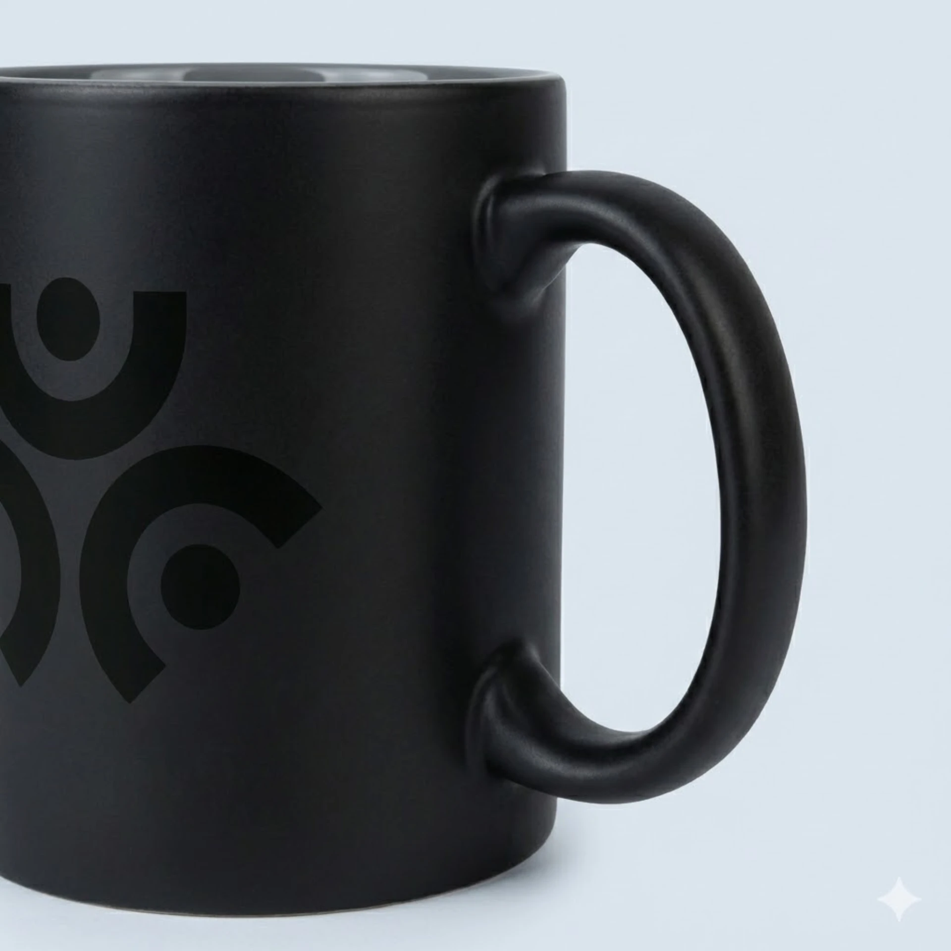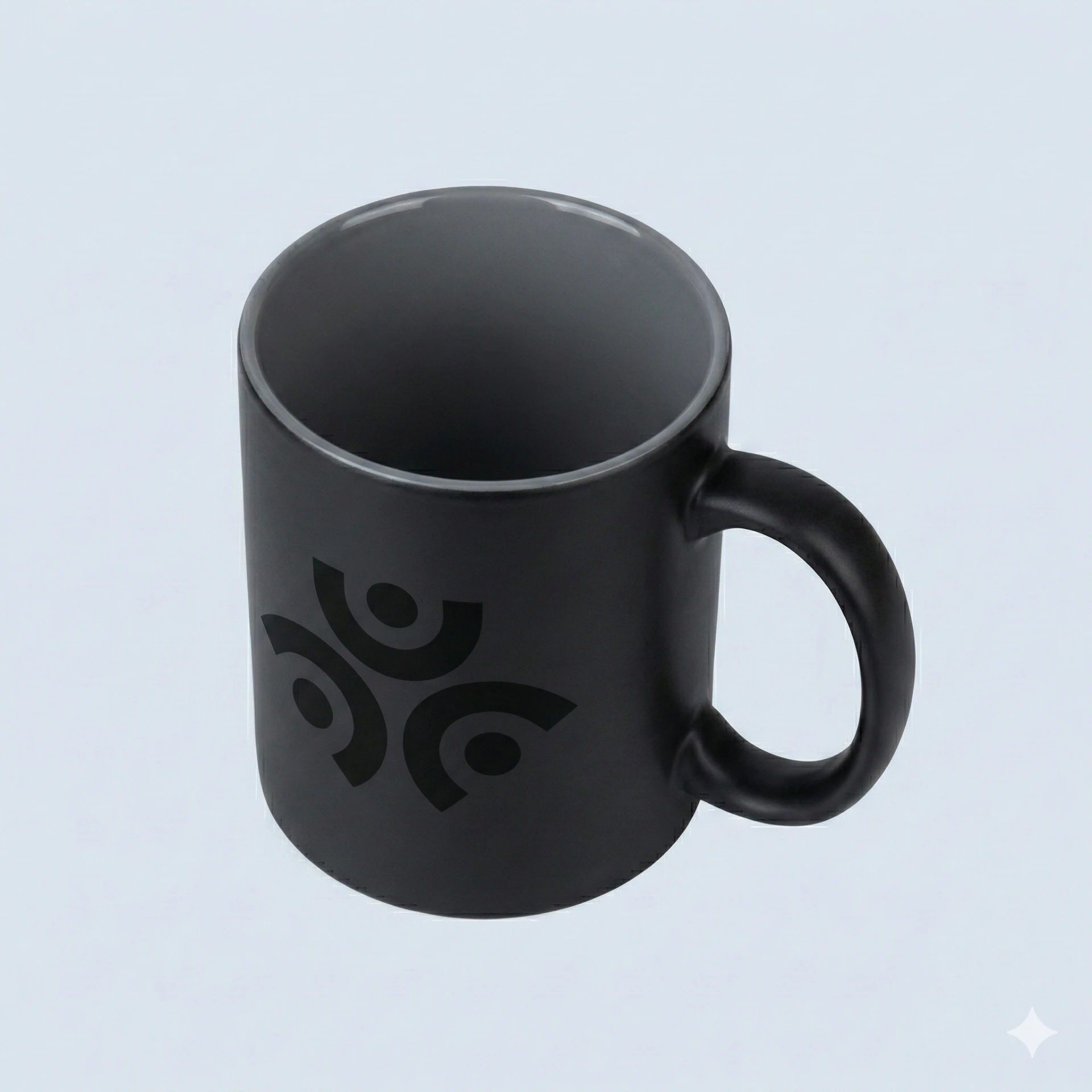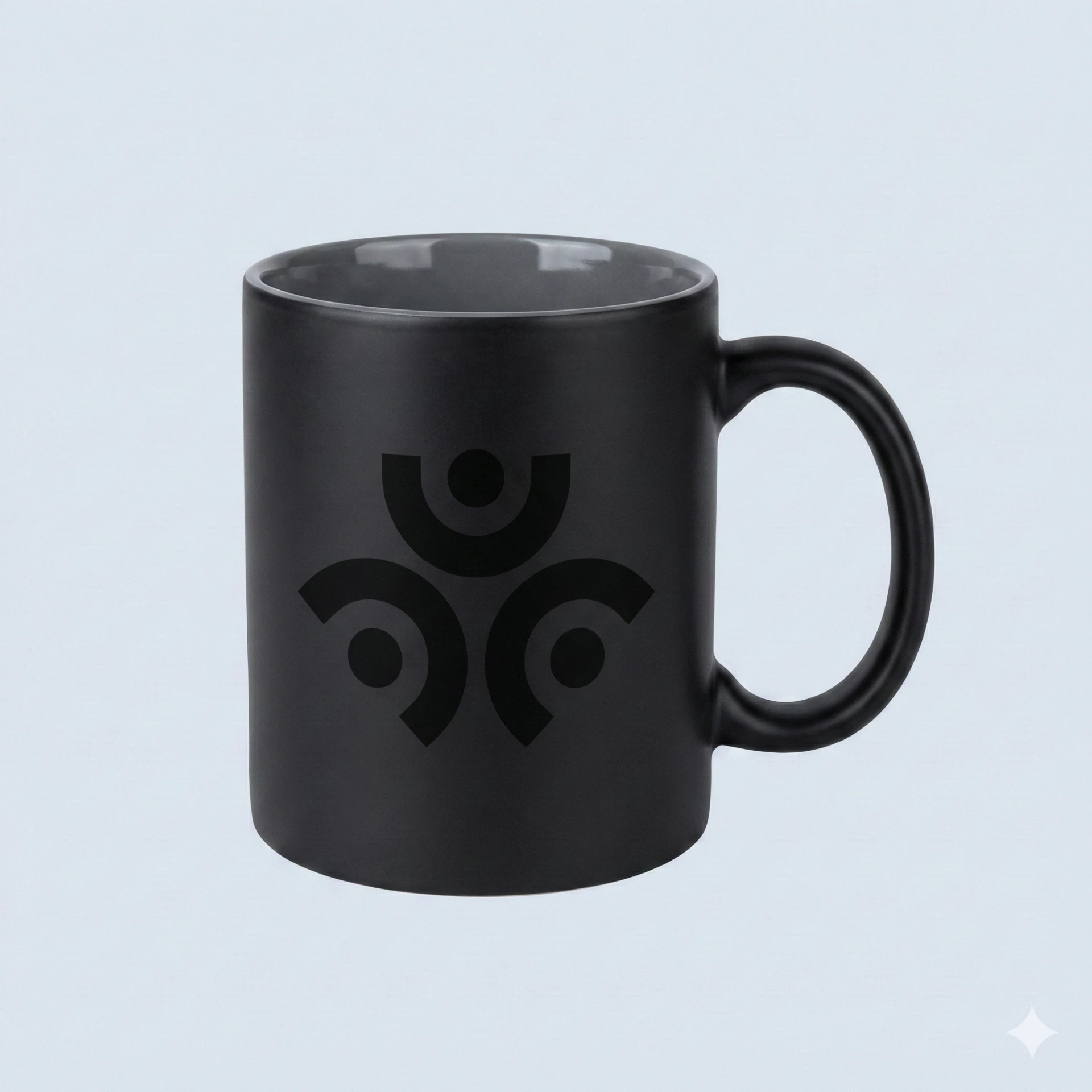 A minimalist 12oz ceramic mug with a matte exterior and glossy interior. The UCPhub logo is printed on both sides. Dishwasher and microwave safe.